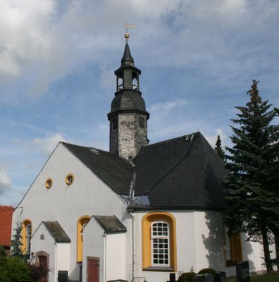 Sachgesamtheit Kirche St. Johannis Enthauptung und Kirchhof Hartmannsdorf, mit folgenden Einzeldenkmalen: Kirche, Grabmal an der Außenwand und Kirchhofsmauer (siehe Einzeldenkmaldokument - Obj. 08956190) sowie Kirchhof (Sachgesamtheitsteil) Schulweg