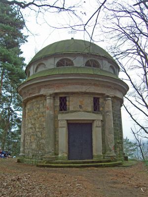 Einzeldenkmal der Sachgesamtheit Rittergut Thürmsdorf: Mausoleum der Familie Biedermann, Kuppelbau mit Halbsäulengliederung, baugeschichtlich, ortsgeschichtlich und personengeschichtlich von Bedeutung Ausschnitt des Textes aus der Sachgesamtheit (nur Teil 3 der Gartenanlagen) ... Beschreibung Teil 3 – Bereich um das Mausoleum: Bauli