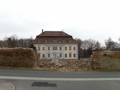 Ehemaliges Herrenhaus (mit Anbauten) eines Rittergutes und Toreinfahrt zum Gutsgelände Hauptstraße 9