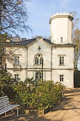 Sachgesamtheit Stadtpark Hainichen, mit folgenden Einzeldenkmalen: Villa, heute Gellert-Museum (siehe Einzeldenkmalliste - Obj. 09300424), Gärtnerhaus, Schweizerhäuschen, Pavillons (Musikpavillon, »Apotheke«, chinesischer Pavillon) und Blumenuhr