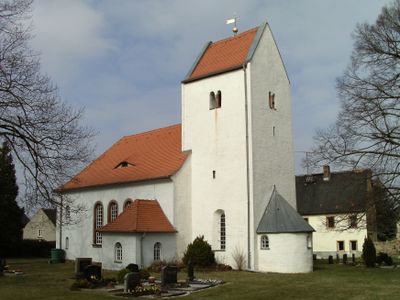 Kirche (mit Ausstattung), Kirchhof mit Einfriedung, Kriegerdenkmal für die Gefallenen des Ersten Weltkrieges und zwei alte Grabmale (für Carl Moritz Winter und Max Kunze) Hauptstraße -