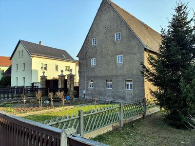 Hauptstraße 12, Pomßen, Wohnstallhaus eines Dreiseithofes und Toranlage mit Pfeiler aus gelben Ziegeln; Zeugnis bäuerlicher Bau- und Lebensweise vergangener Zeiten, bau- und ortsgeschichtlich von Bedeutung