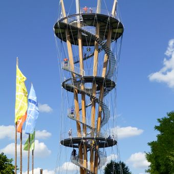Der von Studenten der Technischen Hochschule Stuttgart entworfene und von schlaich bergermann partner konstruierte Turm öffnete im Juni 2018.