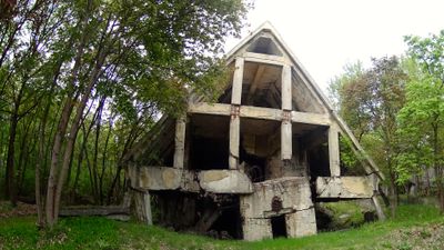 Der Bunkerkomplex zeigt deutsche Militärtechnik, die Tarnungstechniken durch den Bau falscher Wohnstrukturen über der Erde einbezieht.