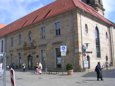 Sophienkirche, 1700/01, durch Groß von Trockau errichtet, die Kirche als Sandsteinquader-Eckhaus, zweigeschossig mit Walmdach gestaltet, Turm unvollendet; die restlich erhaltene Bausubstanz als Fassaden (gegen Hauptstraße, Liste der Baudenkmäler in Erlangen/F#Fr