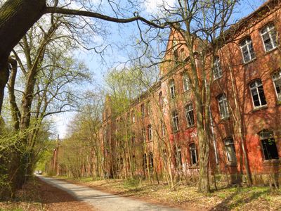 Der Kaserne Tauentzienstraße Komplex umfasst mehrere Gebäude einschließlich Mannschaftsunterkünfte, Verwaltungsbüros und Pferdeställe in Backsteinarchitektur.