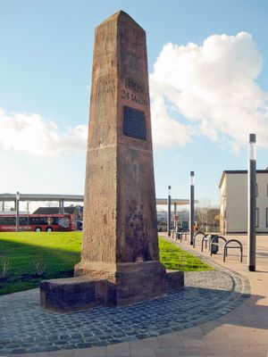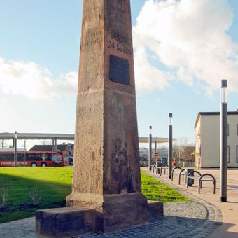 Meilenstein, historischer Ganzmeilenstein in Merseburg im Saalekreis in Sachsen-Anhalt