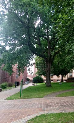Friedenseiche, Naturdenkmal in Buchen (Odenwald), Baden-Württemberg gepflanzt und gewidmet anlässlich des Friedenschlusses 1871