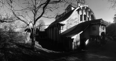 Die ehemalige Kläranlage verfügt über Gebäude mit roten Ziegelfassaden und großen Industriefenstern über mehrere Etagen.