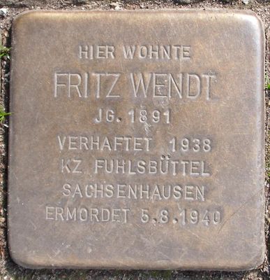 Stolperstein für Fritz Wendt, Stolperstein in Hamburg-St. Georg
