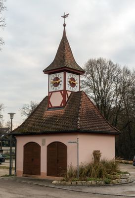 Bürgerzentrum, Gemeindehaus, erdgeschossiger, verputzter Walmdachbau mit Uhrtürmchen mit Spitzhelm, Wetterfahne bez. 1926.