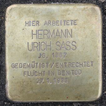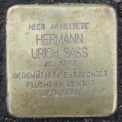 Stolperstein für Hermann Urich Sass, Stolperstein in Hamburg-St. Pauli