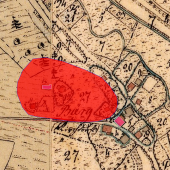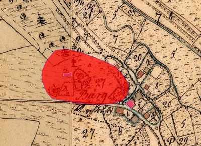 Archäologische Untersuchungen an diesem Ort enthüllten Spuren einer ehemaligen Burganlage, Teil der mittelalterlichen Verteidigungssiedlungen in der Region.