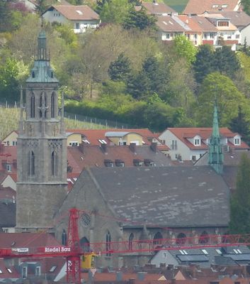 St. Josef, Kirchengebäude in Würzburg Kath. Pfarrkirche St. Josef, dreischiffige Basilika mit eingezogenem 5/8-Chor und Querschiff, Satteldach mit durchbochenem Dachreiter und vorgezogener Eckturm mit geschweiftem Zeltdach und Laterne, unverputzter