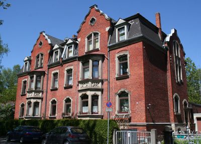 Baudenkmal D-4-63-000-632 in Coburg im Ortsteil Coburg, Wohnhaus, zweigeschossiges Mansardwalmdachgebäude mit Ziergiebeln und Erkern, neogotisch, von Johannes Köhler, 1901/02.