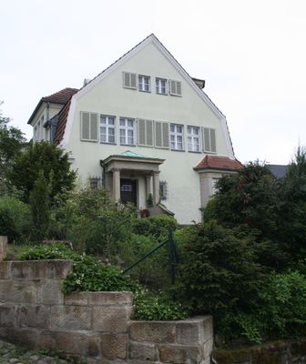 Baudenkmal D-4-63-000-628 in Coburg im Ortsteil Coburg, Villa, zweigeschossiges Mansarddachgebäude mit polygonalem Eckerker, Heimatstil, von Arthur Bergmann, 1926.