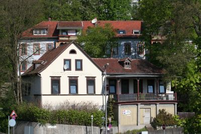 Baudenkmal D-4-63-000-619 in Coburg im Ortsteil Coburg, Ehem. Wirtshaus, zweigeschossiger Satteldachbau, 1820, mit Querbau von 1848 und hölzerner Lauben von Ferdinand Meyer, 1924.