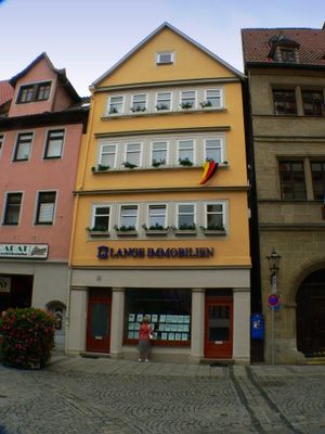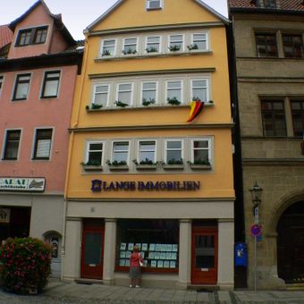 Baudenkmal D-4-63-000-127 in Coburg im Ortsteil Coburg, Wohn- und Geschäftshaus, viergeschossiges, giebelständiges Satteldachgebäude, Keller und Erdgeschoss im Kern 15. Jh., Obergeschosse Fachwerk, Ausbau 17.-19. Jh.