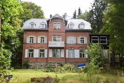 Baudenkmal D-4-72-121-12 in Bischofsgrün im Ortsteil Bischofsgrün, Vorstadtvilla, zweigeschossiger Krüppelwalmdachbau mit dreigeschossigem Mittelrisalit und Schwebgebinde, reiche Sandsteingliederung, bez. 1892, von Carl Wölfel, westliche eingeschossige Erweiterung 1912, Vergrößern und Aufstocken der Erweiterung um