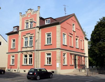 Baudenkmal D-4-63-000-429 in Coburg im Ortsteil Coburg, Wohnhaus, zweigeschossiger Satteldachbau mit Zwerchhausrisalit, neugotisch, von Bernhard Felber, 1872.