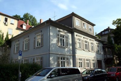 Baudenkmal D-4-63-000-379 in Coburg im Ortsteil Coburg, Wohnhaus, zweigeschossiger Walmdachbau, Fachwerkkonstruktion, mit Mittelrisalit mit verschiefertem Zwerchhaus, Klassizismus, 1835, Aufstockung 1862, geschlossener Balkon, von Georg Kessler, 1909, moderner Dachausbau.