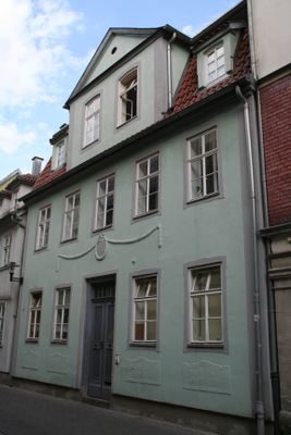 Baudenkmal D-4-63-000-325 in Coburg im Ortsteil Coburg, Wohn- und Geschäftshaus, zweigeschossiger massiver Mansarddachbau mit Zwerchhaus, um 1800, Putzfassade mit Festons und Kartusche, 1920, Ladenvergrößerung, 1832.