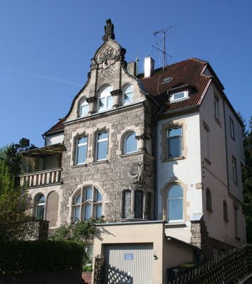 Baudenkmal D-4-63-000-3 in Coburg im Ortsteil Coburg, Villa, mit Ziergiebel und Turm, reich dekoriert, von Paul Schaarschmidt, 1904 .