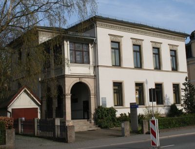 Baudenkmal D-4-63-000-286 in Coburg im Ortsteil Coburg, Villa, zweigeschossiges Walmdachgebäude mit Laube, spätklassizistisch, um 1870, Laube von Johann Michael Probst und Ferdinand Meyer, 1909.