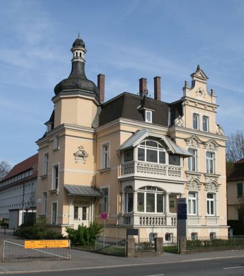 Baudenkmal D-4-63-000-285 in Coburg im Ortsteil Coburg, Ehem. Puppenfabrik Leh, Villa, zweigeschossiges Mansardwalmdachgebäude, Zwerchhausrisalit mit Ziergiebel, Treppenturm und Veranda, Ziegel mit Sandsteingliederung, in Formen der deutschen Renaissance, von Otto Leheis, 1896.