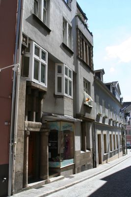 Baudenkmal D-4-63-000-249 in Coburg im Ortsteil Coburg, Wohn- und Geschäftshaus, dreigeschossiges, traufständiges Satteldachgebäude mit zwei dreiseitigen Erkern und Schweifgiebel, Jugendstil, von August Berger, Haustür bez. 1911.