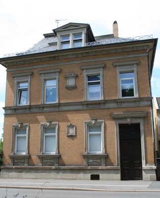 Baudenkmal D-4-63-000-194 in Coburg im Ortsteil Coburg, Villenartiges Wohnhaus, zweigeschossiges Mansarddachgebäude mit turmartigem Risalit, Ziegel mit Sandsteingliederungen, neobarock, 1889.
