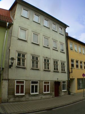 Baudenkmal D-4-63-000-176 in Coburg im Ortsteil Coburg, Wohnhaus, viergeschossiges Walmdachgebäude mit verputzten Fachwerkobergeschossen, vor 1700 (Türblätter mit geschwungener Füllung), Aufstockung von Friedrich Böhm, 1849.