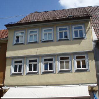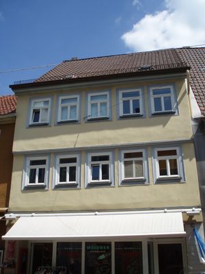 Baudenkmal D-4-63-000-173 in Coburg im Ortsteil Coburg, Wohn- und Geschäftshaus, dreigeschossiges, traufständiges Satteldachgebäude mit verputzten Fachwerkobergeschossen, 17./18. Jh.
