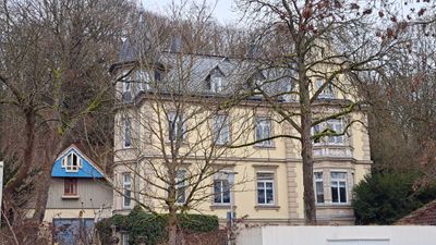 Baudenkmal D-4-63-000-16 in Coburg im Ortsteil Coburg, Villa, zweigeschossiger Walmdachbau über hohem Sockelgeschoss, mit Ziergiebel, achteckigem Turm und reich dekoriertem Polygonalerker, Neurenaissance, von Hermann Kühn, 1874/75.