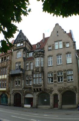 Baudenkmal D-4-63-000-137 in Coburg im Ortsteil Coburg, Wohn- und Geschäftshaus, dreigeschossiges, traufständiges Satteldachhaus, Zwerchhäuser mit geschweiften Giebeln, Erker, Jugendstil, von August Berger, 1904/05.
