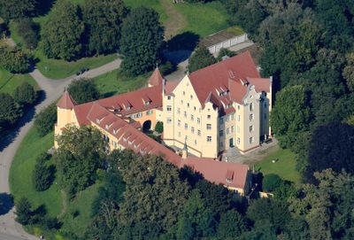 Schloss Erolzheim ist ein Schloss mit drei Geschossen und vier quadratischen Ecktürmen sowie einem zentralen Treppenturm. Die Struktur vereint Renaissancestil mit modernen Anpassungen, die nach umfangreichen Renovierungen in den 1990er Jahren vorgenommen wurden.