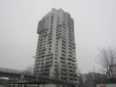 Zwischen 1968 und 1971 vom Architekten Hans Konwiarz erbaut, entstand dieser Wohnturm während Kiels Wohnungsexpansion zur Behebung des Wohnungsmangels.