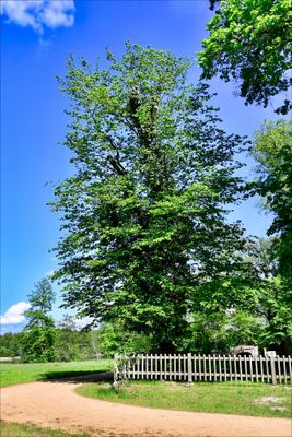 Naturdenkmal Schlitzblättrige Gemeine Hainbuche in der Nordwest-Ecke des Klosterfriedhofs, hinter der Klosterkirche in Chorin
