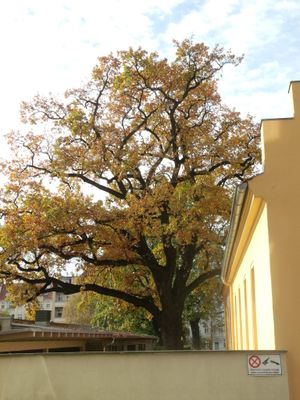 Naturdenkmal [[Eichen|Eiche]]-[[Stieleiche]] (''Quercus robur'') Mauerstraße/Ecke Bärgasse in Cottbus-Mitte