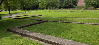Die Anlage befindet sich in der Am Brünnele 3 in Ludwigsburg, wo Besucher die markierten Grundrisse der Gebäude und Informationstafeln vorfinden.