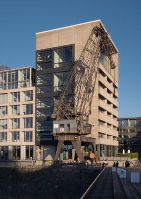 Der Bau von 1997 markierte eine Transformationsperiode des Düsseldorfer Hafenviertels von industriellen Aktivitäten zu kreativen und Medienunternehmen.