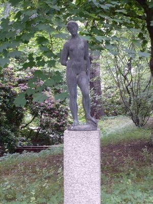 Stehende Barbara, Skulptur von Werner Richter am Späth-Arboretum in Berlin