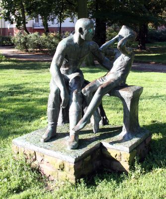 Grenzsoldat mit Kind, Plastik in Berlin-Pankow