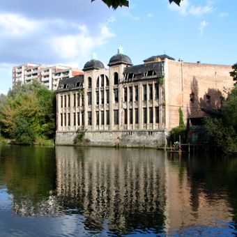 Die Freyberg-Brauerei belegt einen Industriekomplex mit Backsteinarchitektur, der eine erhaltene Flussfassade und mehrere Produktionsbereiche aufweist.