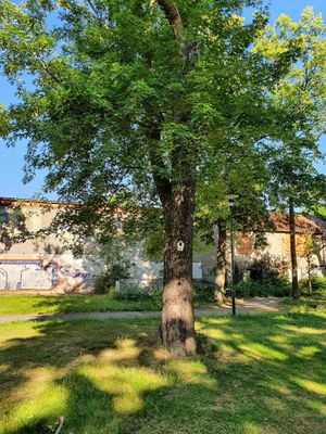 Vogelklauen-Ahorn, Naturdenkmal im Landkreis Leipzig: Vogelklauen-Ahorn (südlicher Baum) in Parkanlage Alter Friedhof in Wurzen