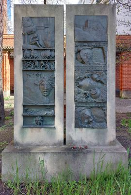 Denkmal Heinrich Schliemann, zwei Bronze-Reliefs an der Heinrich-Schliemann-Oberschule in Berlin
