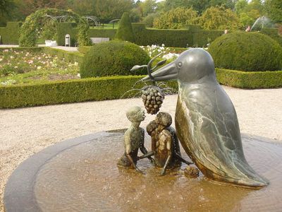 Vogel mit Traube, Zierbrunnen im Britzer Garten in Berlin