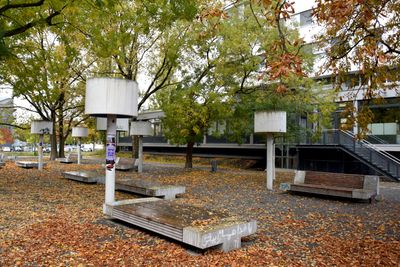 Lesegarten an der Schiller-Bibliothek, Outdoor-Leseplätze mit Leuchten im Berliner Ortsteil Wedding