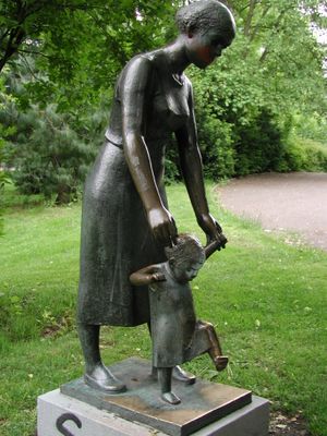 Mutter mit Kind, Skulptur von Walter Sutkowski im Berliner Ortsteil Lichtenberg