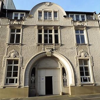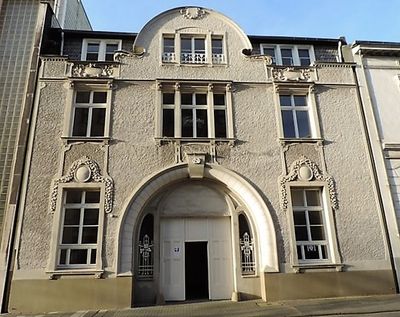 Das Stahlemblem des Industriellen Oskar Natorp von 1900 schmückt das Eingangsportal, das dem Design der Whitechapel Art Gallery ähnelt.